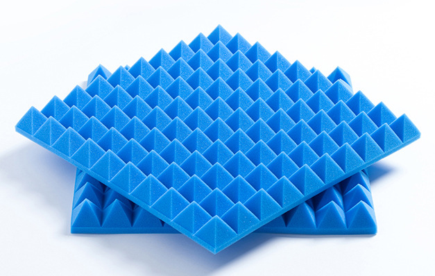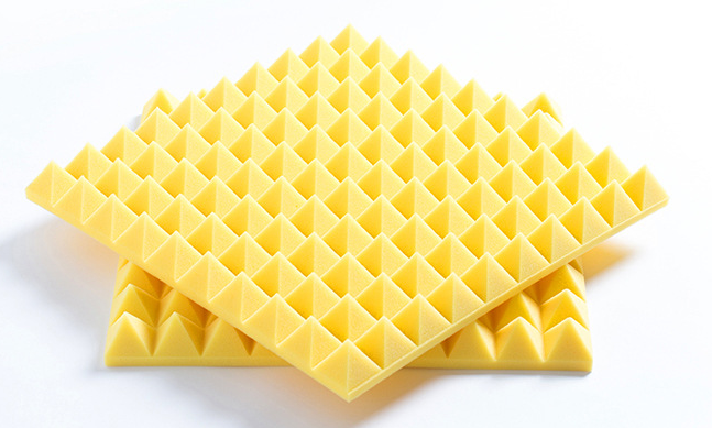 Mút gai tiêu âm kim tự tháp là một loại vật liệu tiêu âm phổ biến, được làm từ xốp PU Foam và có bề mặt tạo hình các kim tự tháp nhỏ.